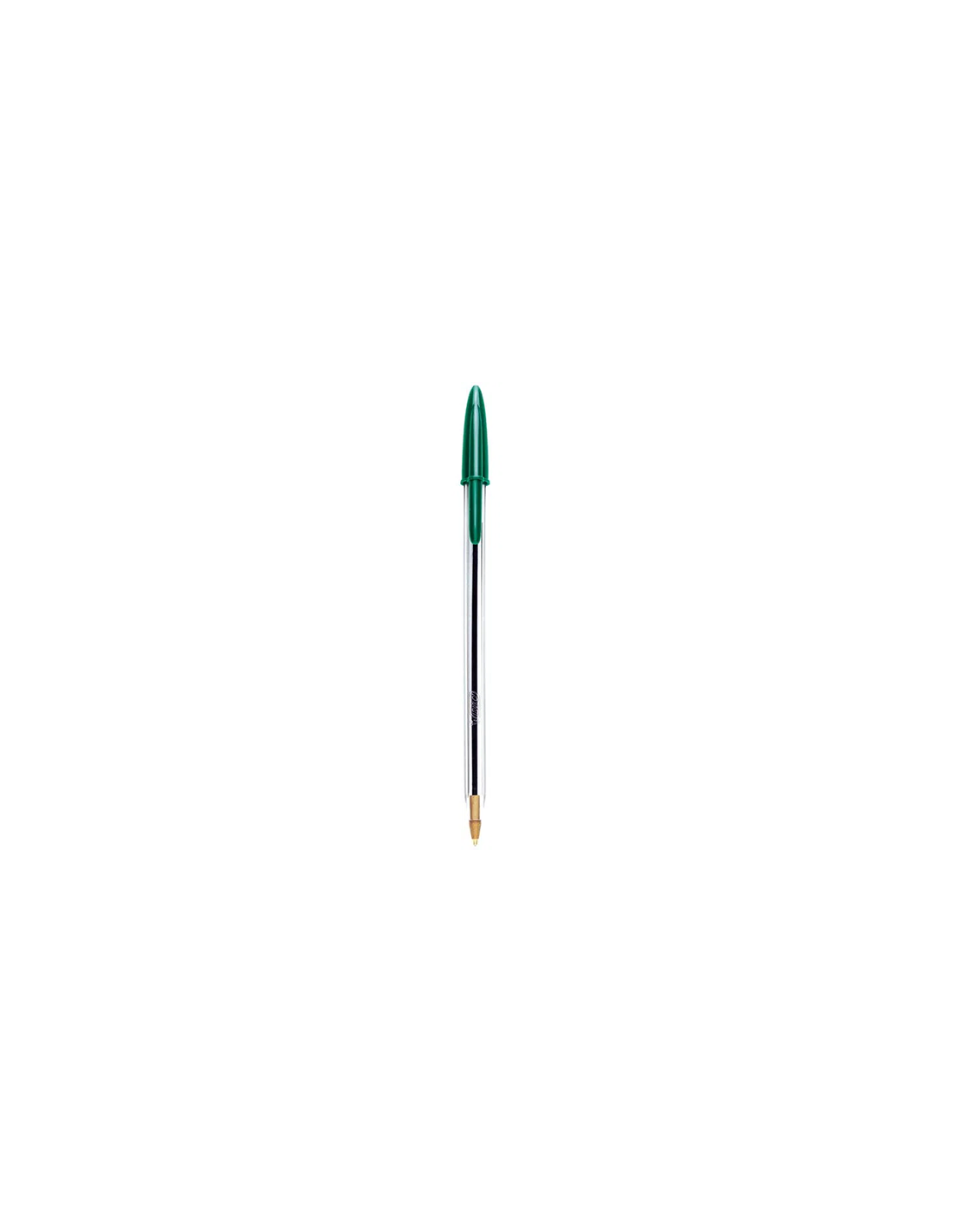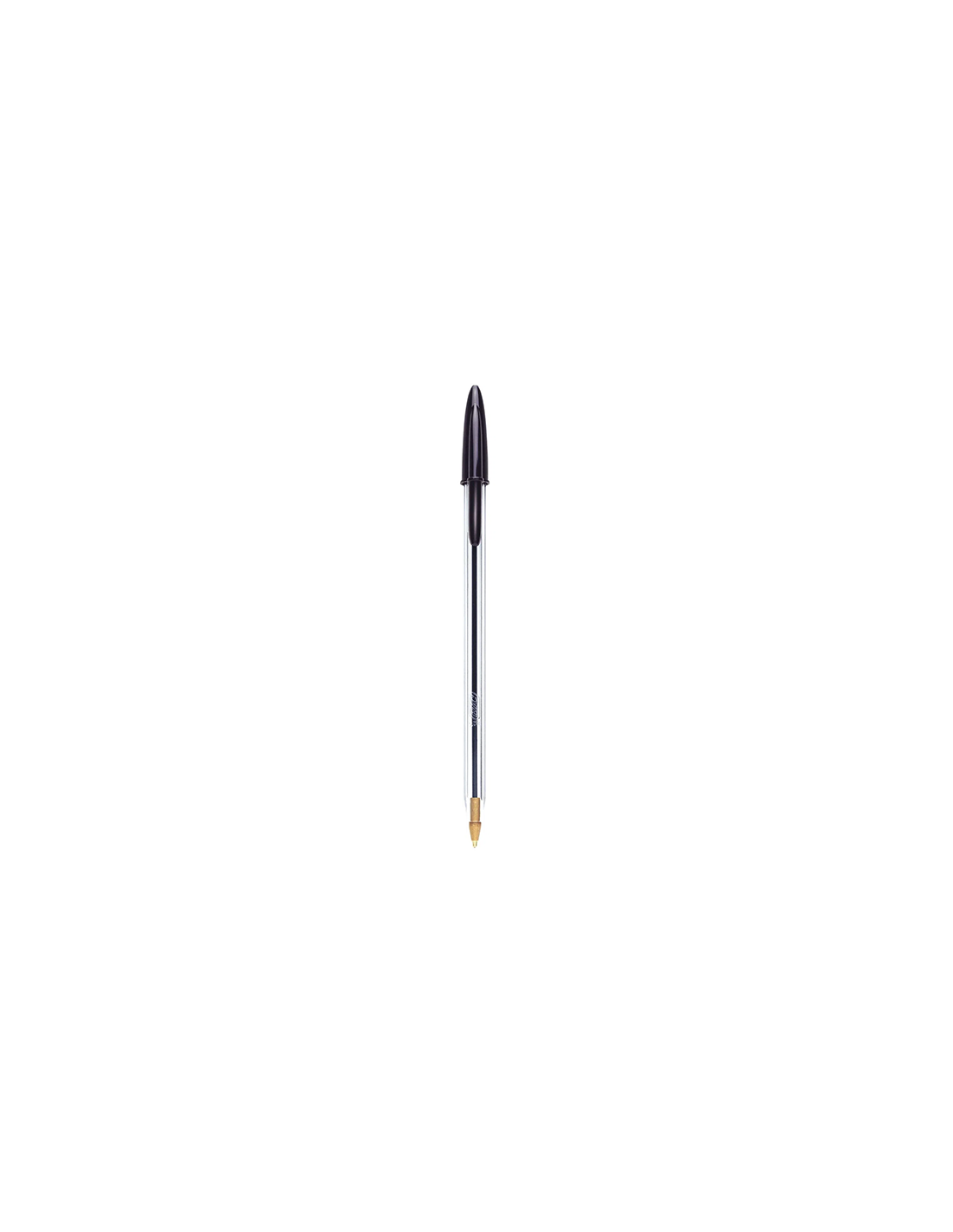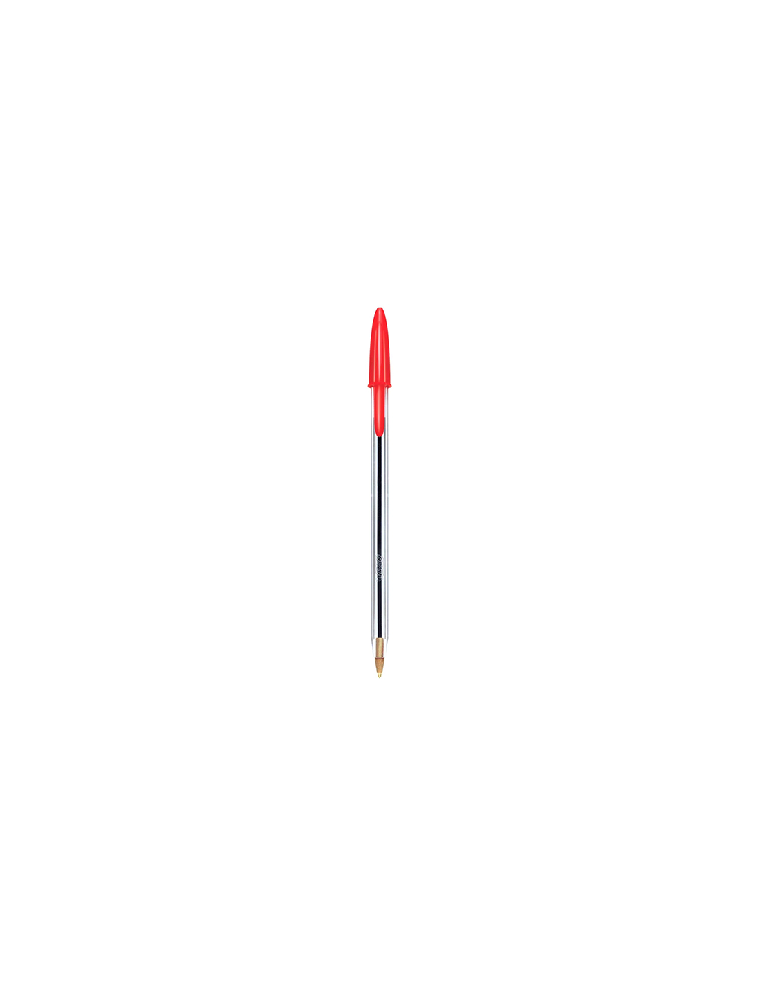 Bolígrafo con cuerpo transparente hexagonal, el de toda la vida.