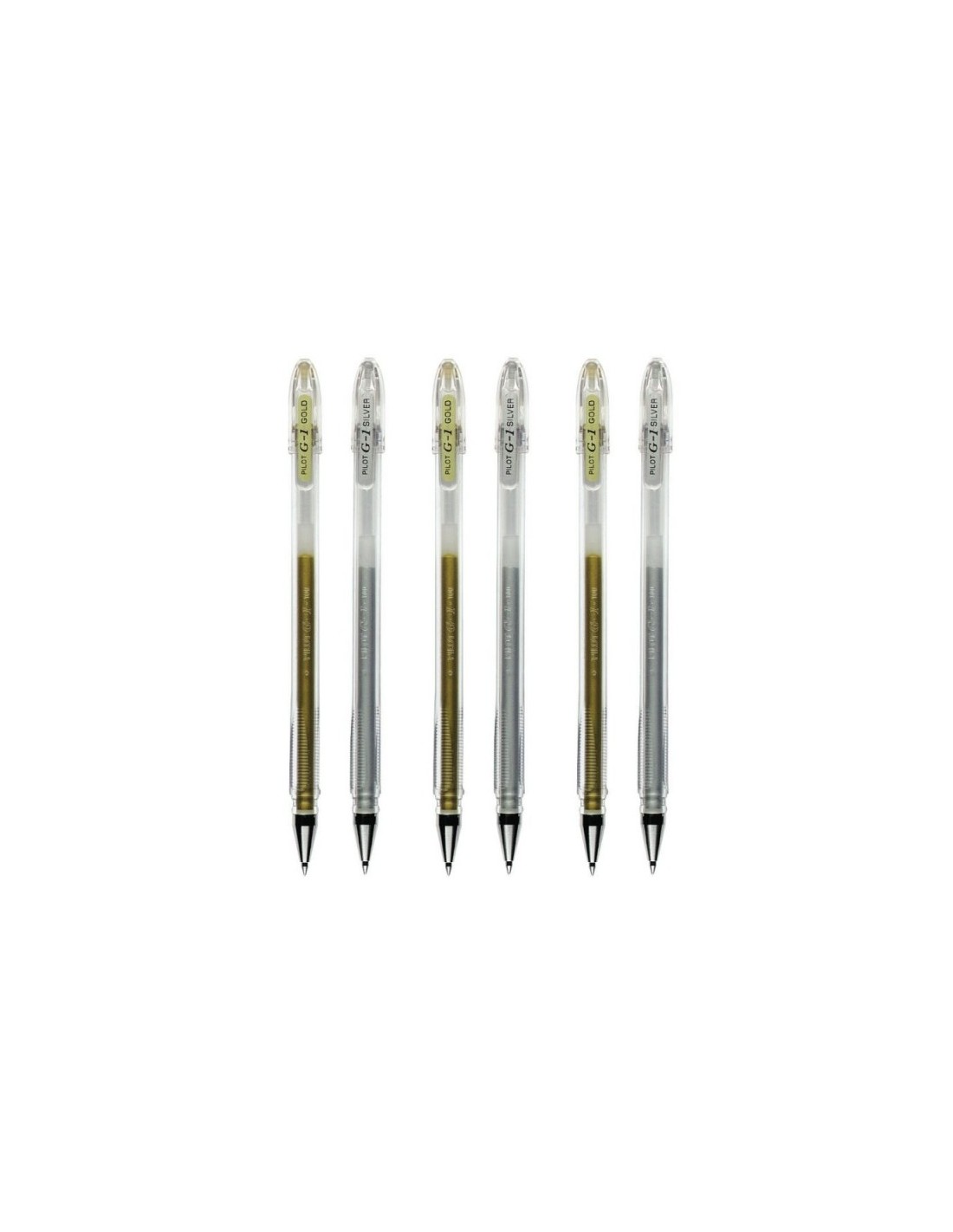 Boligrafo Pilot G1 tinta de gel metalizada. Colores metálicos brillantes dorado y plateado.