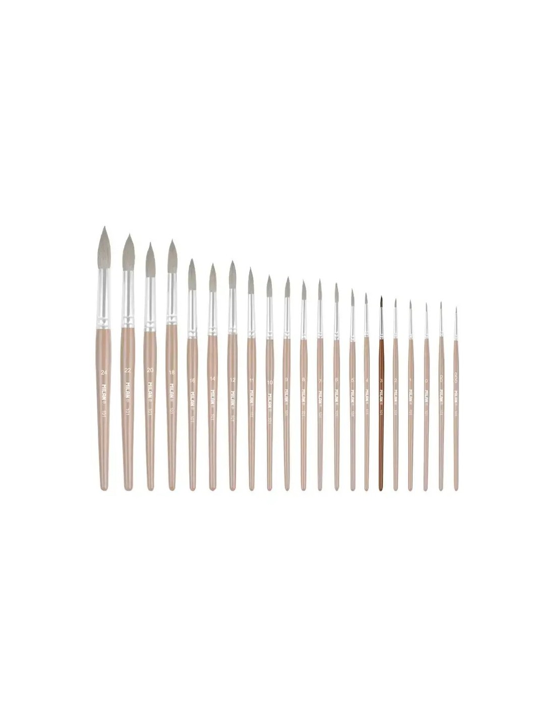 Pincel redondo con mango corto de madera, barnizado en color marrón y virola de aluminio. Composición: 70% pelo natural de cabra + 30% sintético. Adecuado para acuarela, técnicas acuosas y témpera. Diámetro del pelo:2,7 mm. Longitud del pelo: 11,6 mm. Longitud del pincel: 169 mm.