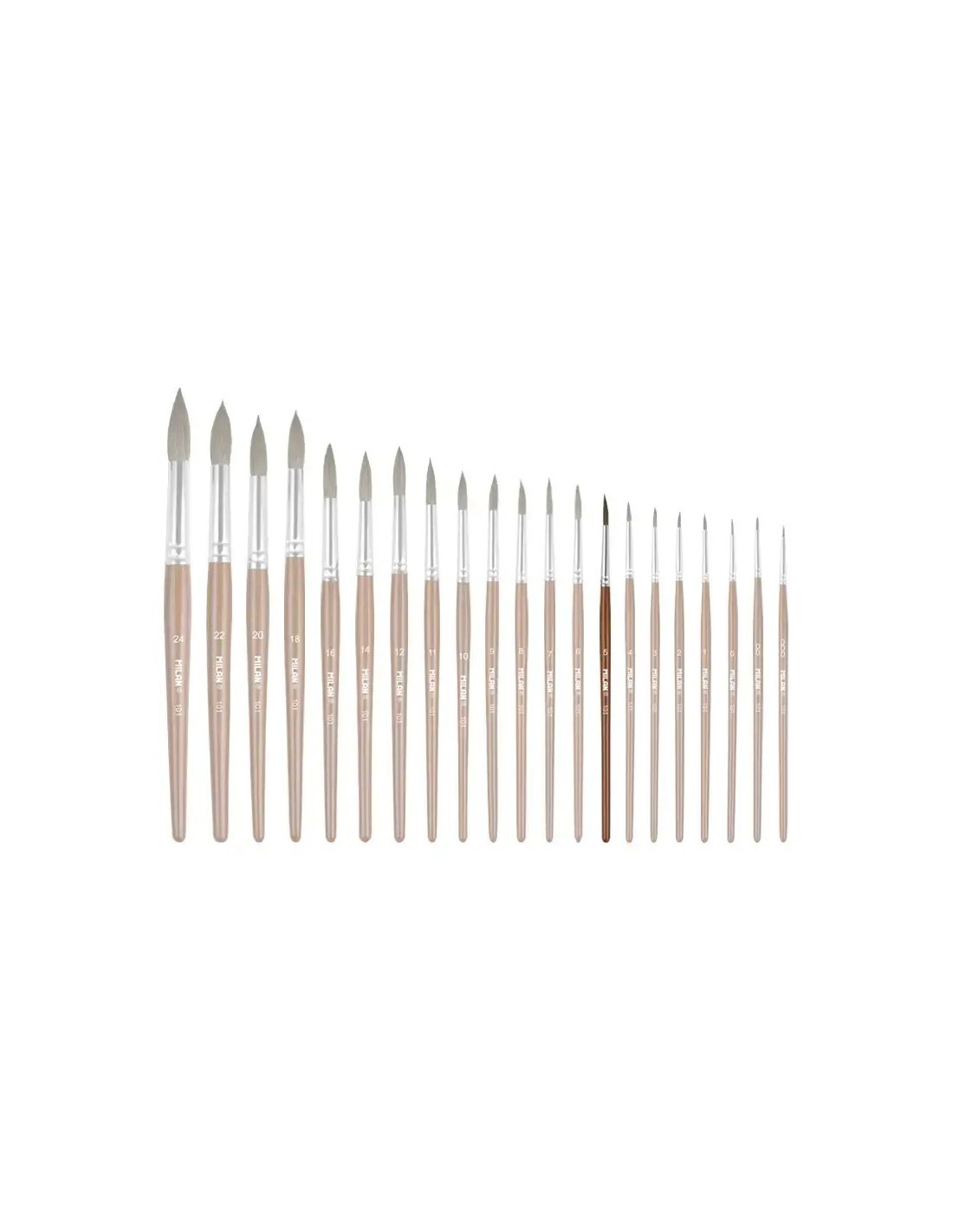 Pincel redondo con mango corto de madera, barnizado en color marrón y virola de aluminio. Composición: 70% pelo natural de cabra + 30% sintético. Adecuado para acuarela, técnicas acuosas y témpera. Diámetro del pelo:3,4 mm. Longitud del pelo: 15,7 mm. Longitud del pincel: 176 mm.