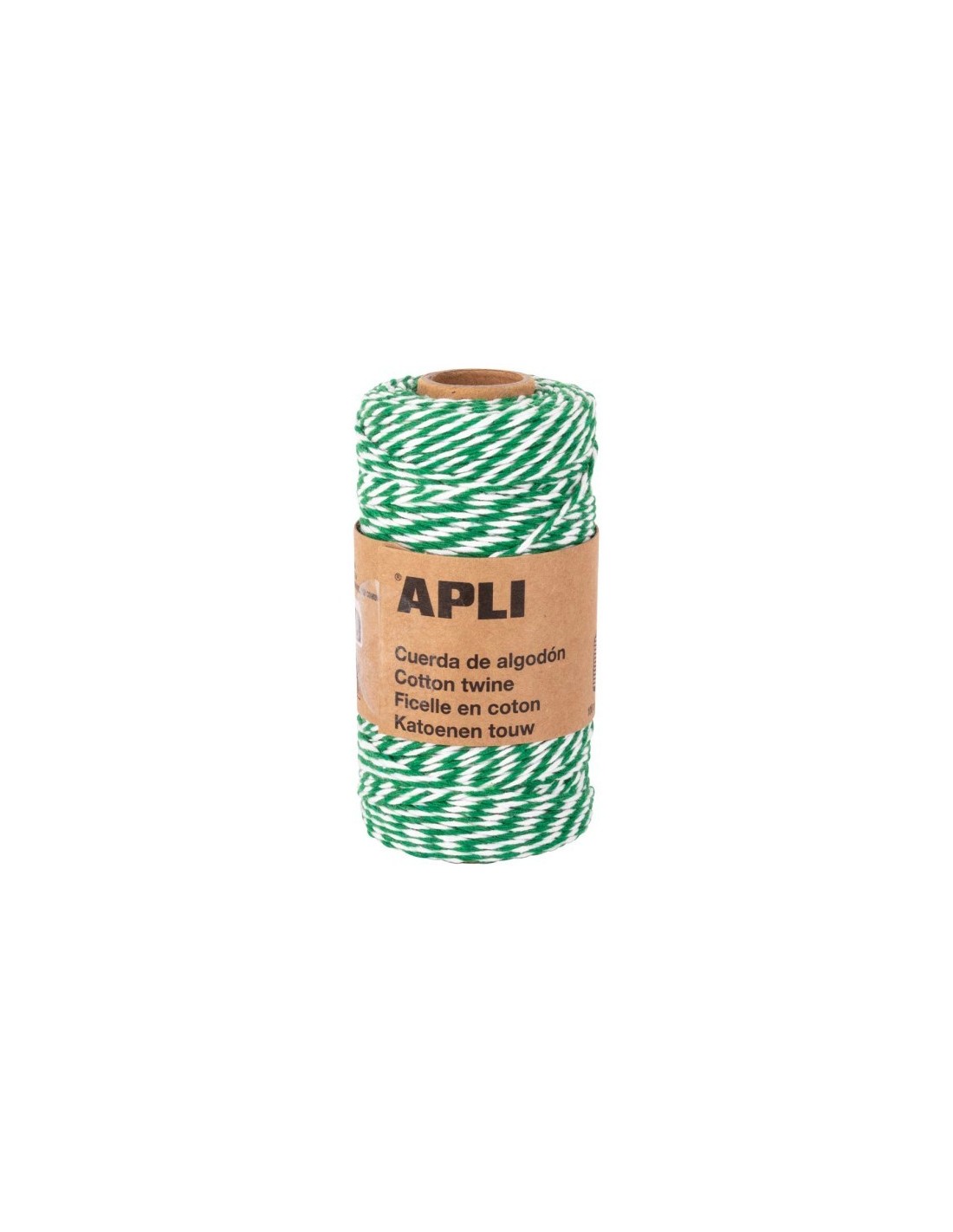 Bobina de cuerda de algodón de color verde y blanco de tamaño 100 m x 2 mm. Son el complemento perfecto para tus regalos y para todos tus proyectos de decoración y envoltura durante las celebraciones.