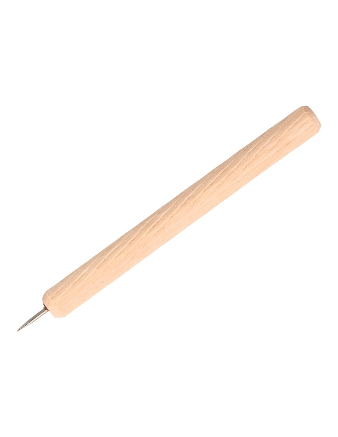 Mango de madera natural lijada, agradable al tacto y con excelente agarre. Punta metálica afilada para perforaciones limpias y precisas. Compatible con múltiples superficies: papel, cartulina, vinilo, hojas, aluminio, goma EVA y corcho.
