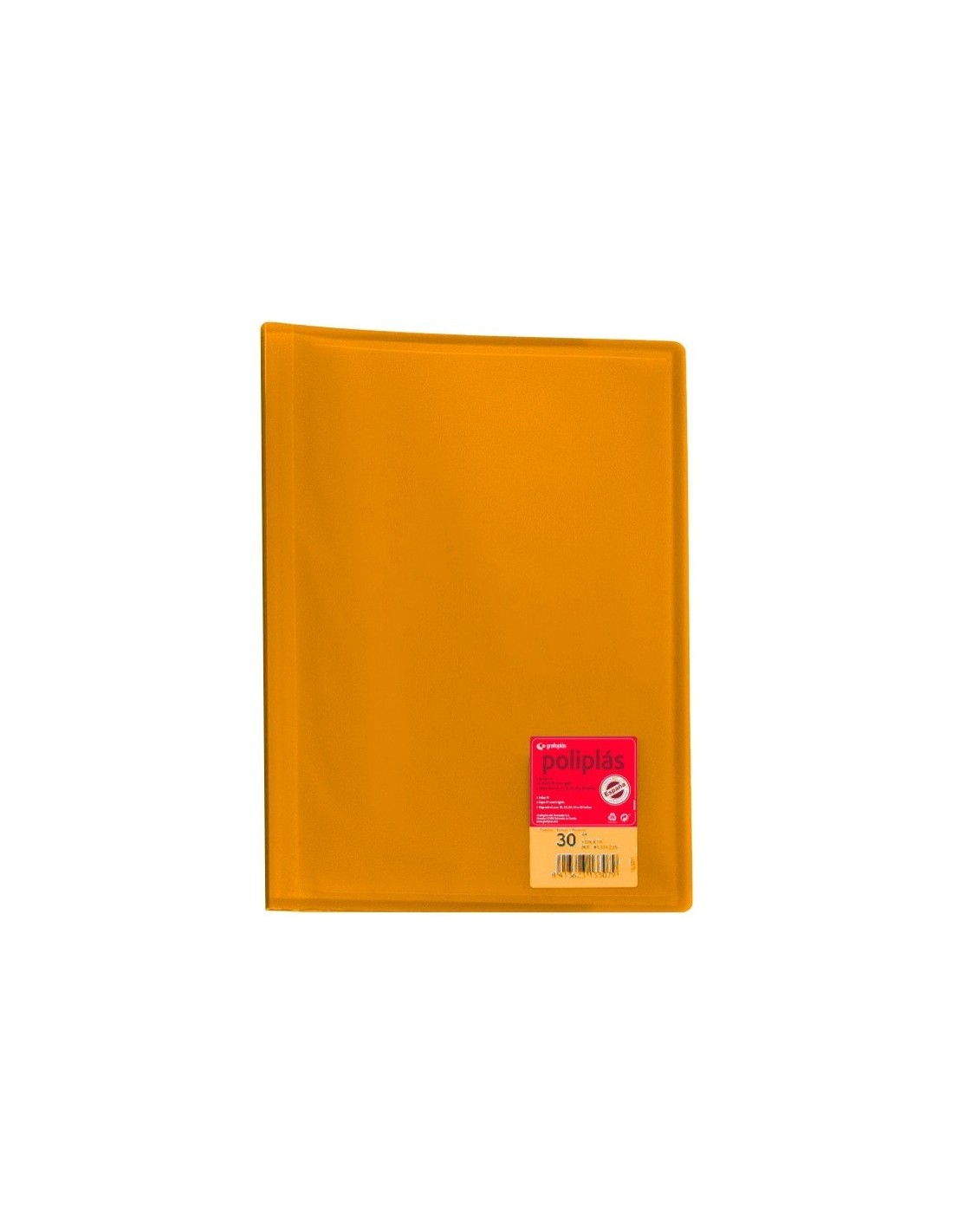 Carpeta de fundas con cubiertas de polipropileno semirígido de colores vivos translúcidos y fundas A4 soldadas al lomo.