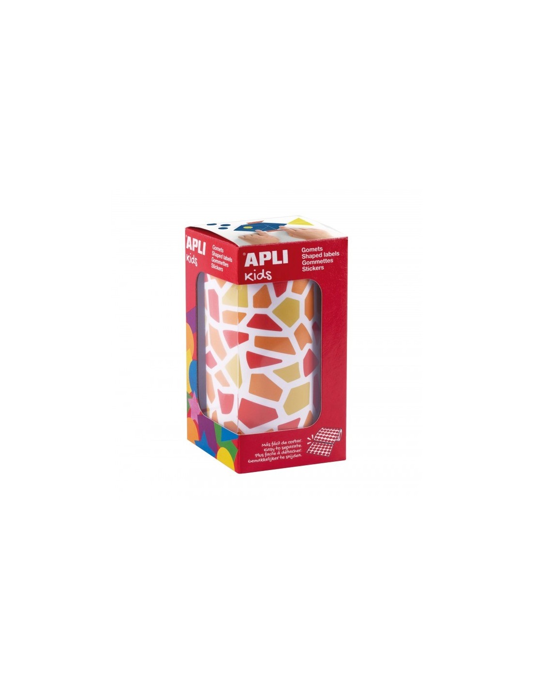 Rollo de gomets Mosaico rojo, naranja y amarillo con adhesivo removible. Cada rollo contiene 30 hojas pretroqueladas para una fácil separación, un total de 2.460 gomets por rollo.