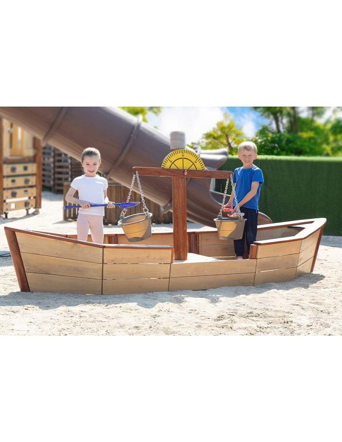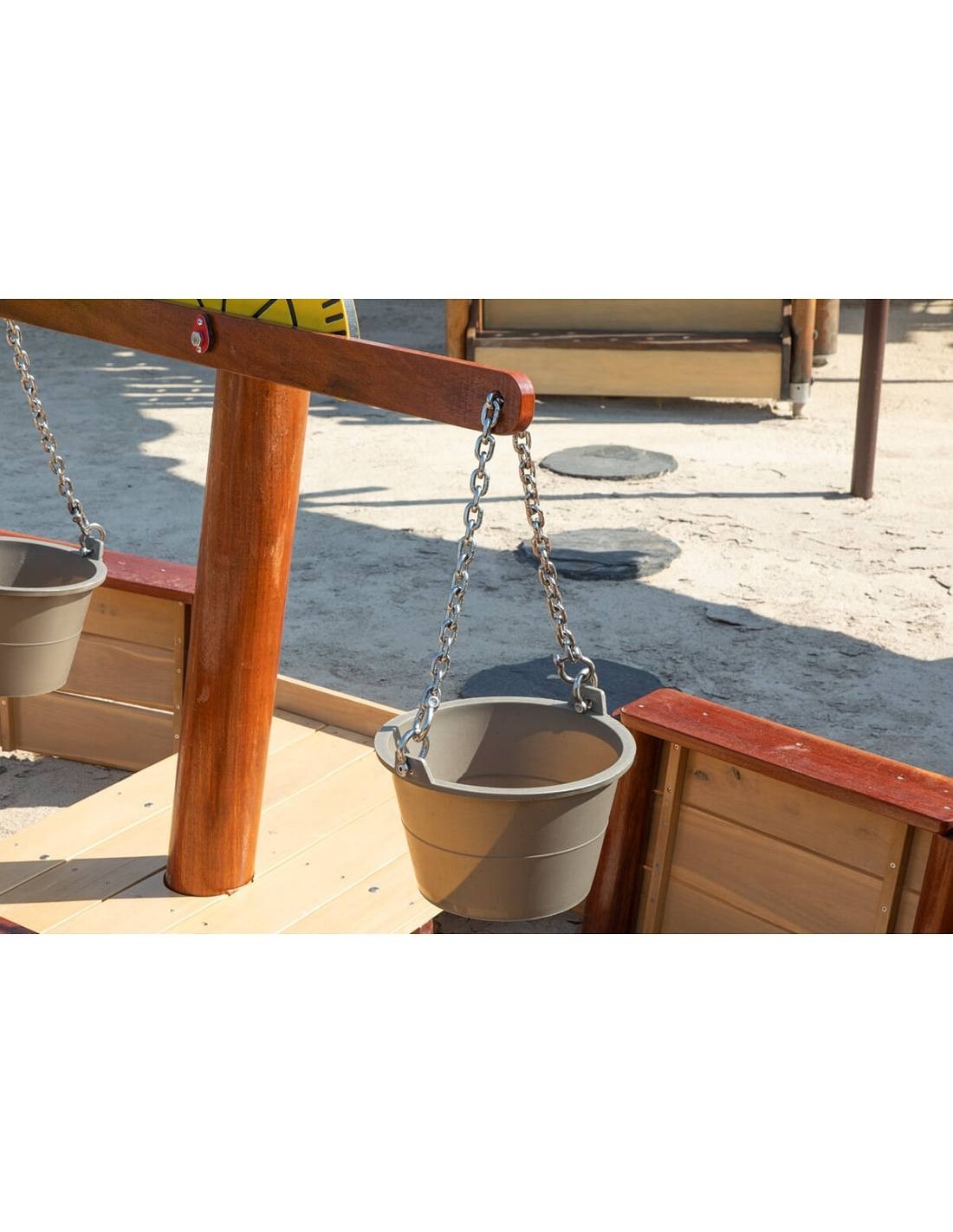 Con la gran escala de arena y los dos cubos firmemente conectados, los niños pueden hacer sus primeras experiencias con términos físicos como el equilibrio y el peso.