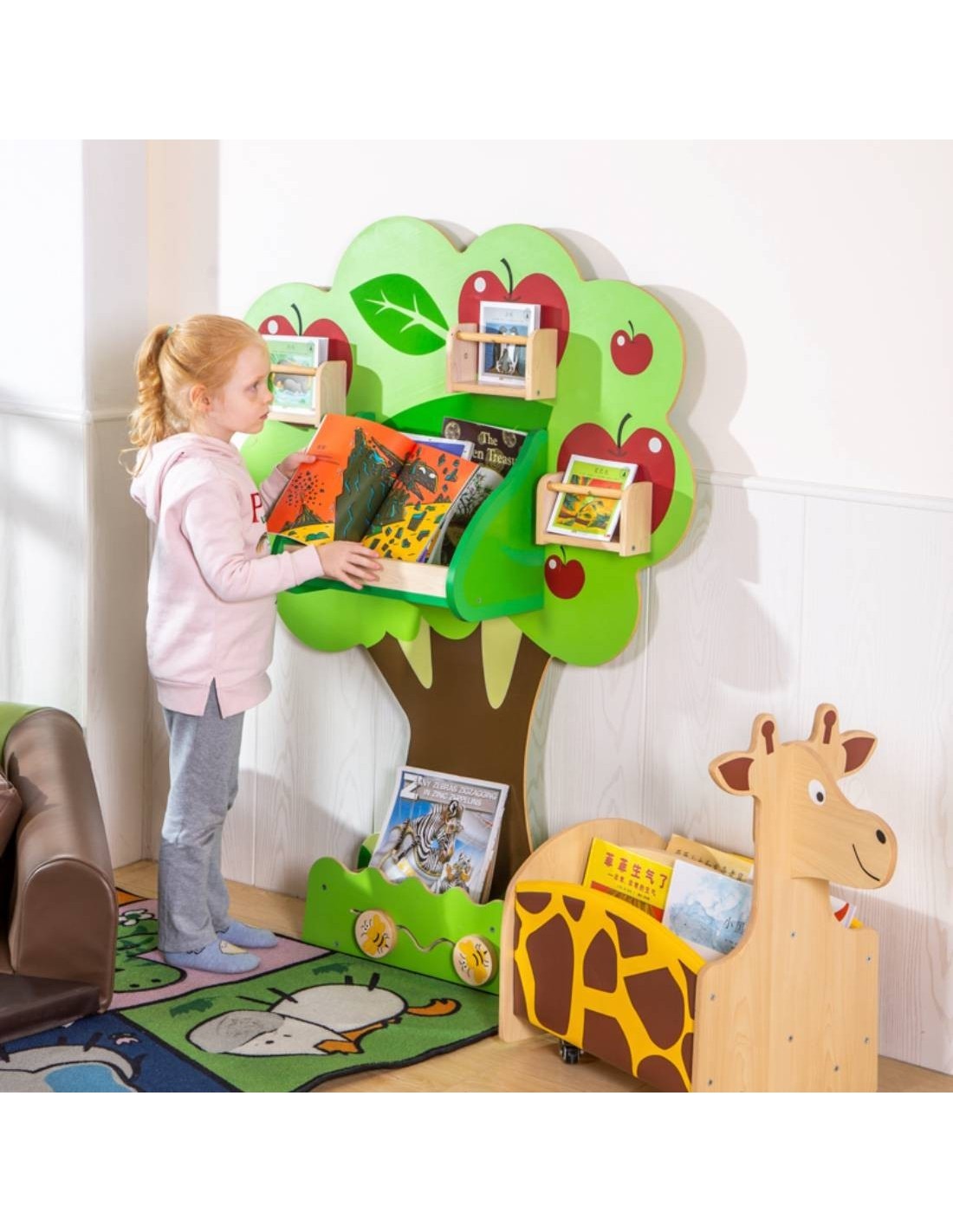 Esta librería interactiva con forma de árbol será un punto focal en cualquier área de lectura.