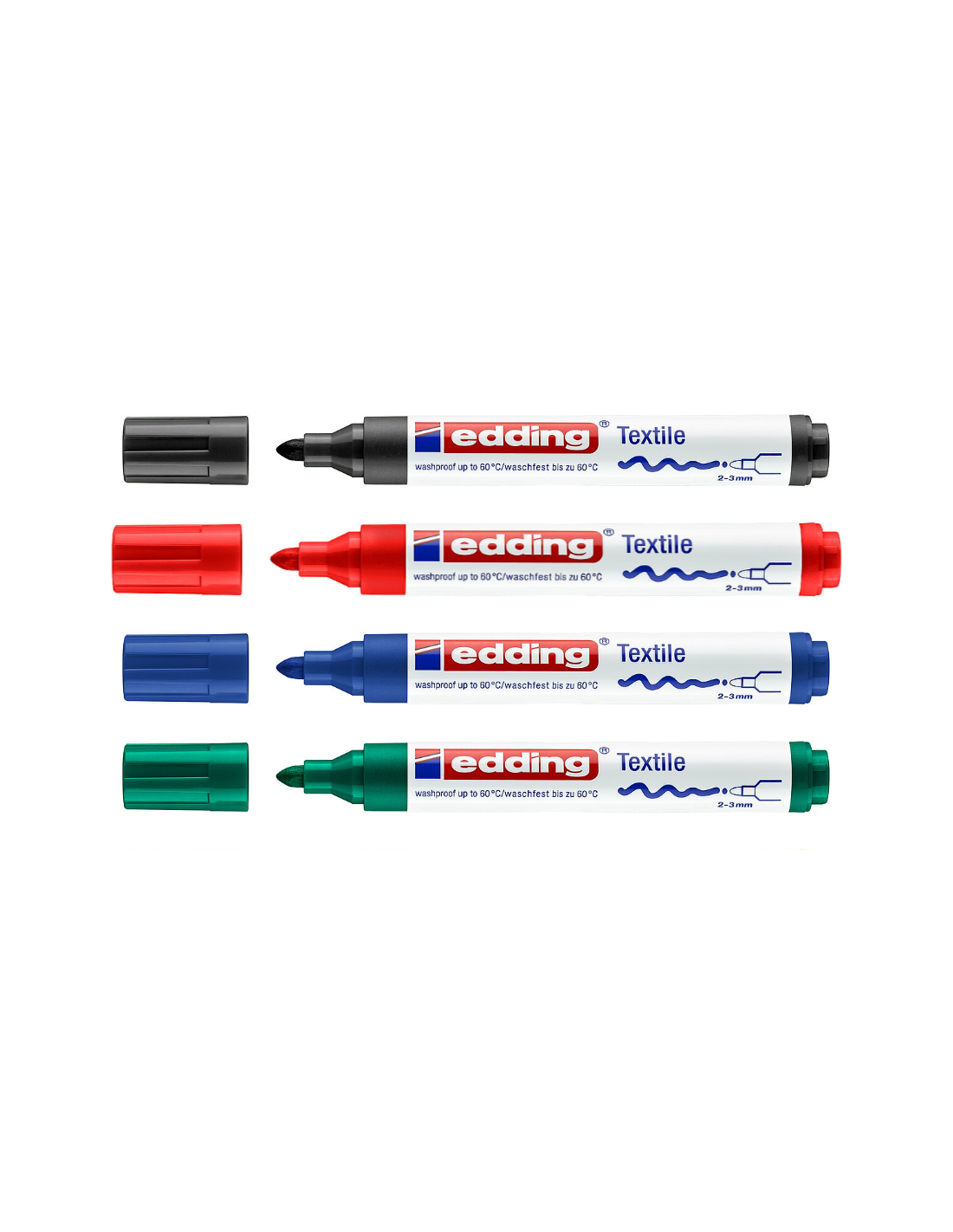 El edding 4500 marcador textil ofrece una excelente definición en multitud de tejidos no tratados químicamente de colores suaves, como algodón y lino, y en diversos tejidos mixtos.