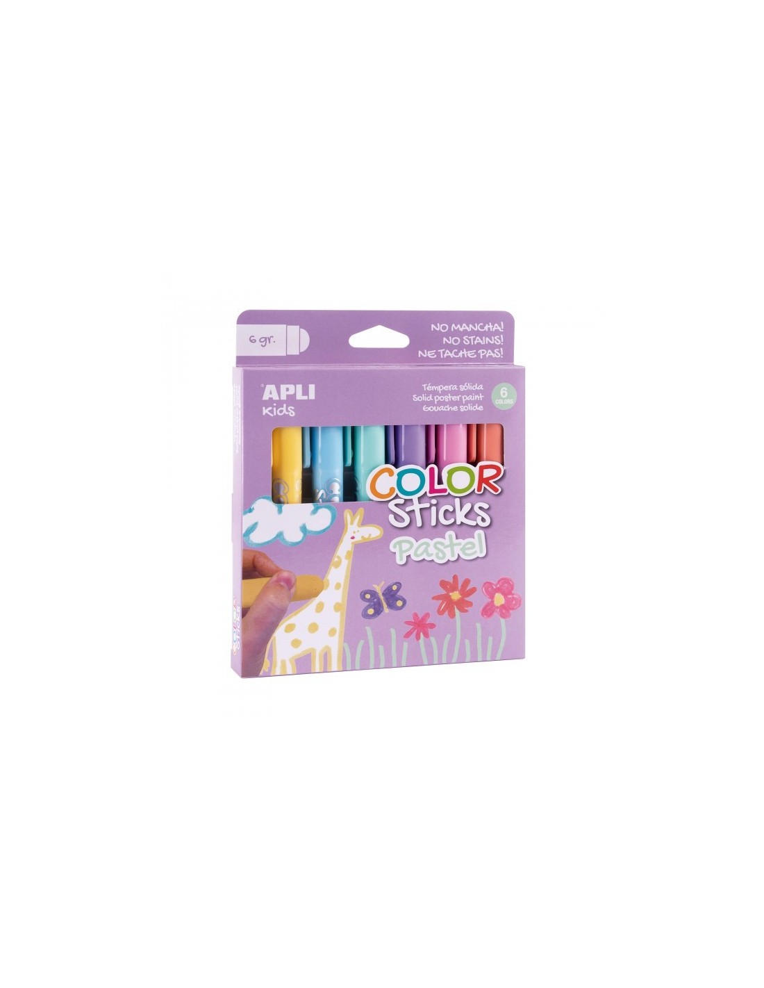 Témperas sólidas Color Sticks. Pack con 6 unidades de 6 g en colores pastel: amarillo, azul, turquesa, violeta, rosa y salmón Ideales para dibujar y pintar sobre papel, cartón, cartulina, etc.