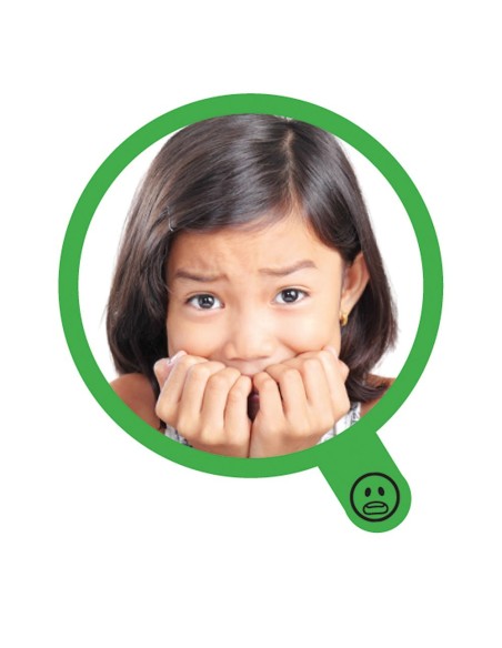 Ayuda a los mas pequeños a ver, aprender a identificar emociones usando el espejo y seis fotos deslizables de niños reales que expresan emociones como: felicidad, sorpresa, miedo, tristeza, estupidez e ira.