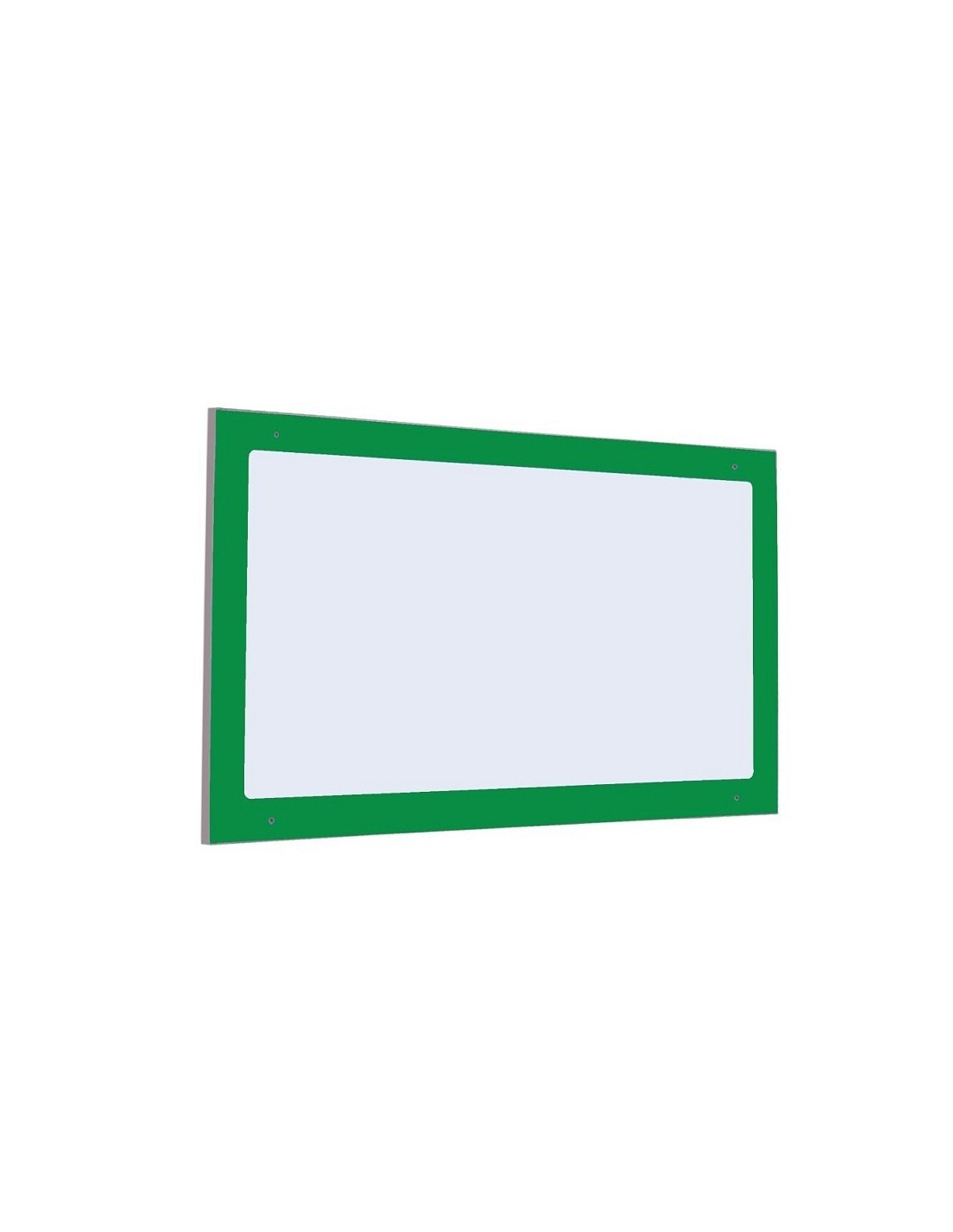 Espejo de seguridad irrompible de poliestireno sobre tablero bilaminado de 19 mm de grosor y cantos en PVC de 2 mm.